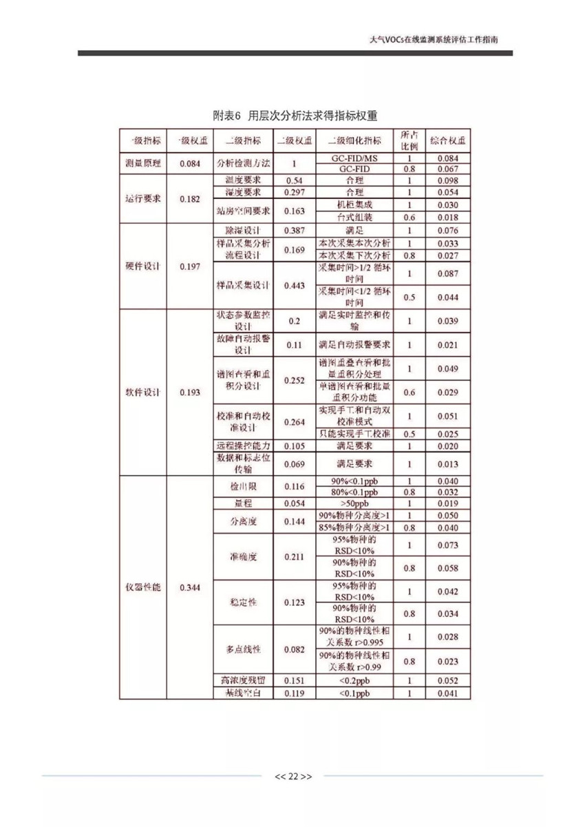 大氣VOCs在線監(jiān)測(cè)技術(shù)評(píng)價(jià)指標(biāo)體系的確定方法