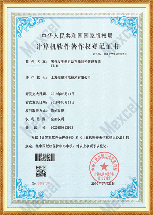 氫氣發(fā)生器在線監(jiān)控管理系統(tǒng)著作權證書