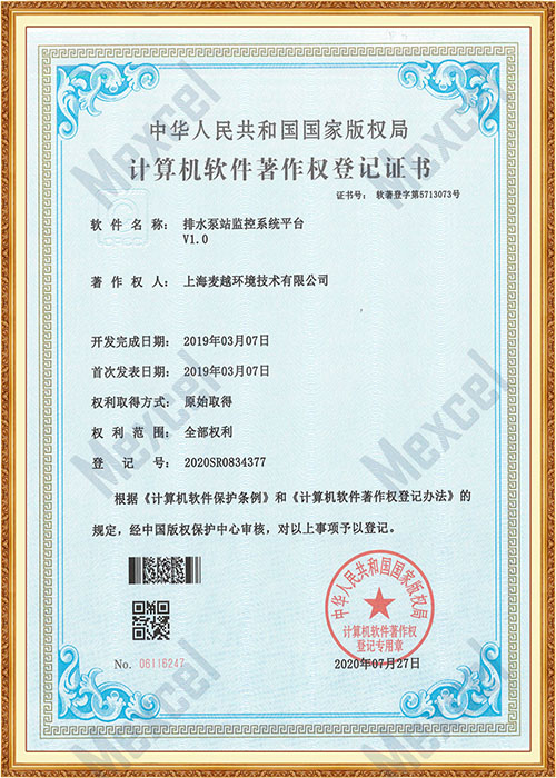 排水泵站監(jiān)控系統(tǒng)平臺著作權證書